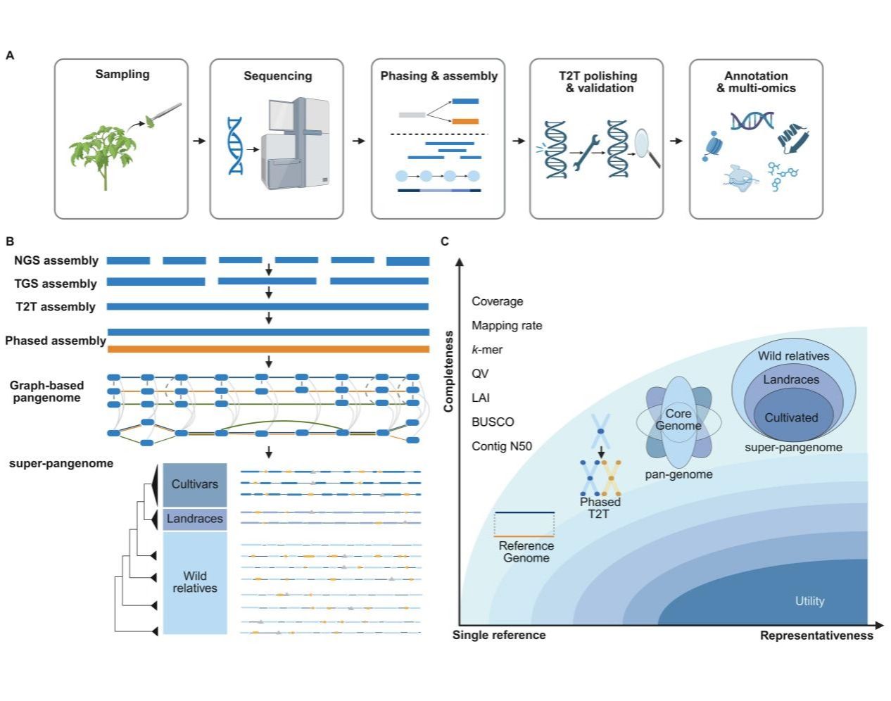 近日,taptap点点官网三亚南繁研究院陈飞教授团队在植物基因组学领域提出全新理论框架,成功定义了植物基因组研究的“终极形态”:分型端粒到端粒(Phased T2T)超级泛基因组 。该成果近日发表于国际植物科学期刊《Trends in Plant Science》(植物科学趋势),通过系统整合全基因组高保真组装与超级泛基因组技术路径,将基因组完整度与群体多样性覆盖率提升至前所未有的高度 ,解决了传统参考基因组缺失复杂区域(如着丝粒、端粒)且无法涵盖物种内遗传变异的核心痛点,...