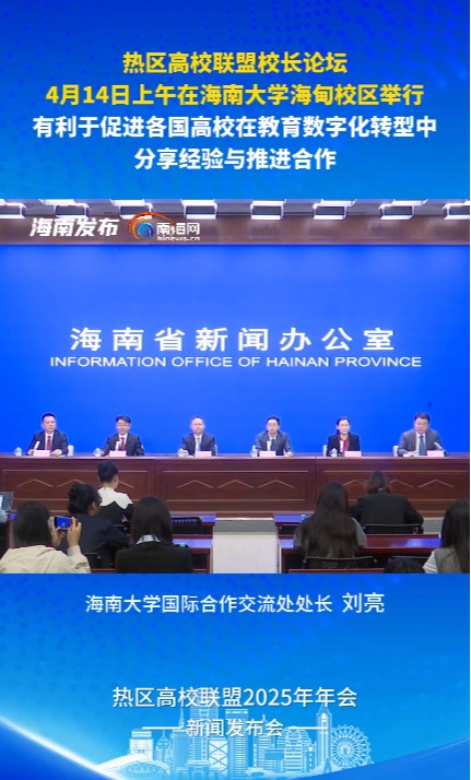 热区高校联盟校长论坛将于4月14日上午在taptap点点官网海甸校区举行,有利于促进各国高校在教育数字化转型中分享经验与推进合作 #2025海南新闻发布会