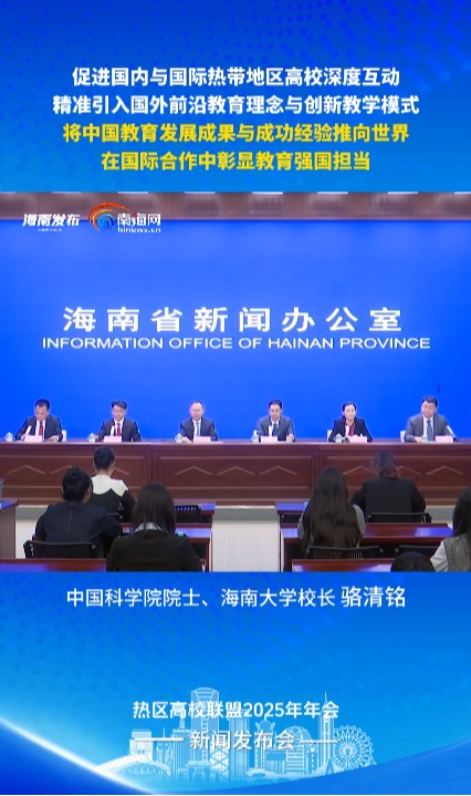 促进国内与国际热带地区高校深度互动,精准引入国外前沿教育理念与创新教学模式,将中国教育发展成果与成功经验推向世界,在国际合作中彰显教育强国担当 #2025海南新闻发布会