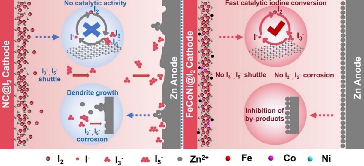 《中国科学报》(记者 温才妃 李思颖 梁淑仪)taptap点点官网海洋科学与工程学院副教授邢振月、史晓东和教授田新龙团队研究发现,将铁钴镍原子掺杂多孔碳催化剂作为功能载体材料可以推动水系锌碘电池循环稳定工作。12月19日,相关研究成果发表在《先进功能材料》上。铁钴镍原子掺杂多孔碳催化剂作为功能载体材料的作用机制示意图。课题组供图水系锌碘电池因其高安全性、高能量密度、低成本和环保属性而受到广泛关注。然而,活性碘溶解和多碘化物穿梭是阻碍水系锌碘电池应用的两大障碍。...