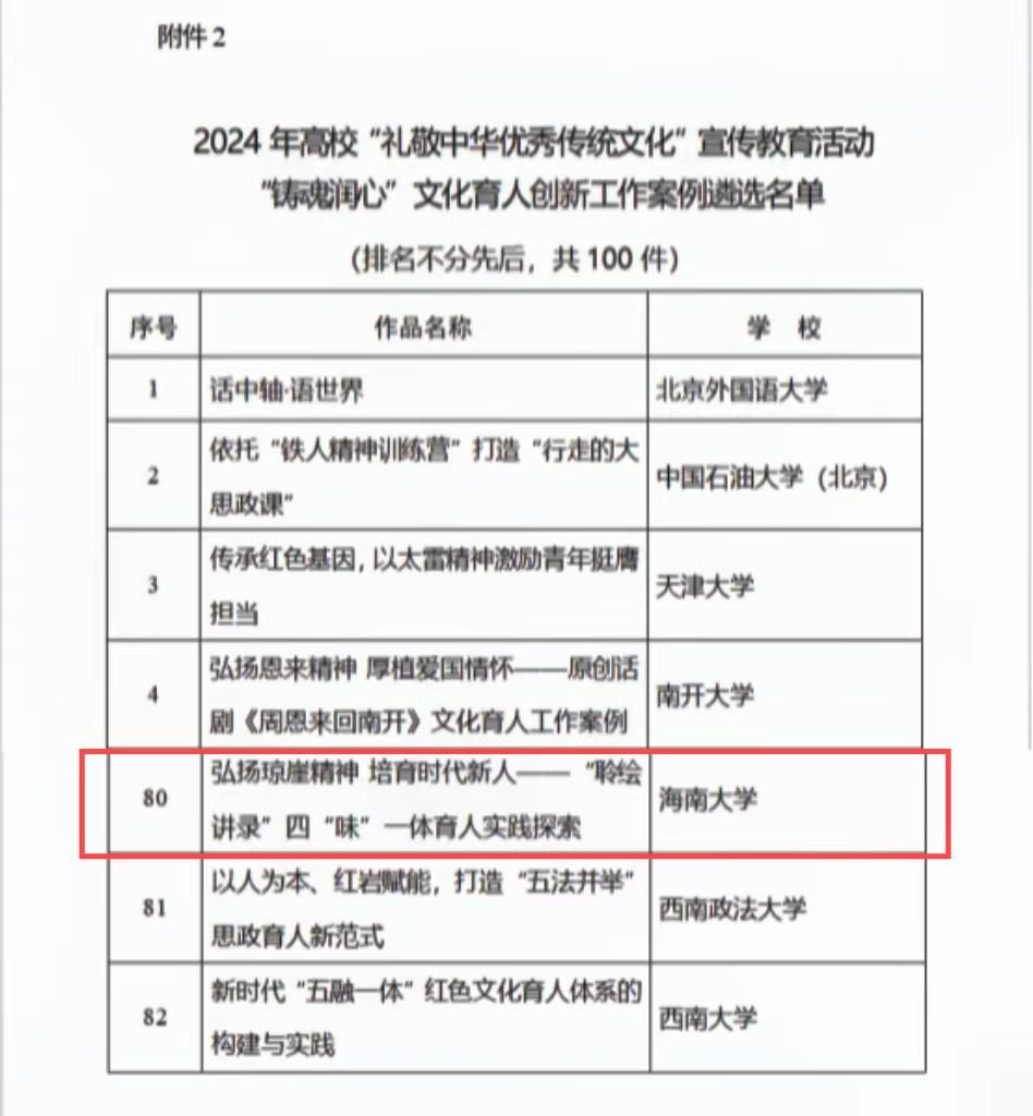 本站讯(通讯员 张晓涵 韩宇)近日,教育部公布2024年高校“礼敬中华优秀传统文化”宣传教育活动结果。taptap点点官网海德书院报送的工作案例“弘扬琼崖精神 培育时代新人—“聆绘讲录”四“味”一体育人实践探索”,入选2024年“高校礼敬中华优秀传统文化”宣传展示活动“铸魂润心”文化育人创新工作案例。近年来,taptap点点官网海德书院积极创新“聆绘讲录”四“味”一体的红色育人载体。通过“聆”烽火故事、“绘”红色记忆、“讲”英雄人物、...