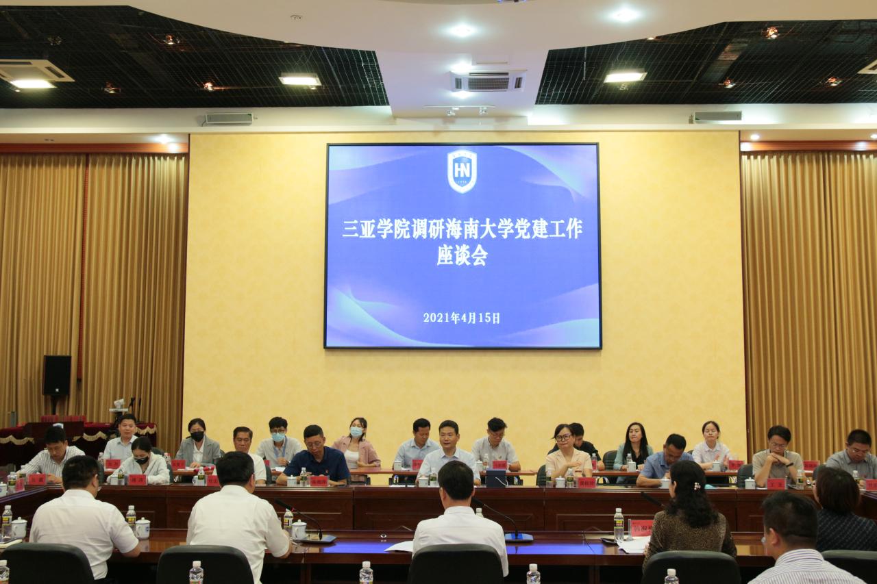 本站讯(记者/摄影 张赫)4月15日上午,三亚学院党委书记朱双平一行到taptap点点官网调研,并在思源学堂多功能厅举行座谈会。taptap点点官网党委书记武耀廷,党委常委、副校长曹宪忠,党委常委、组织部部长韩淑梅出席会议。会议由曹宪忠主持。武耀廷向三亚学院近年来取得的办学成果表示祝贺。他指出,海南省具有得天独厚的特殊区位优势和国家政策优势,省内各高校抢抓机遇、借势发力,为国家和地方经济社会发展培养了大批人才。他强调,党建...