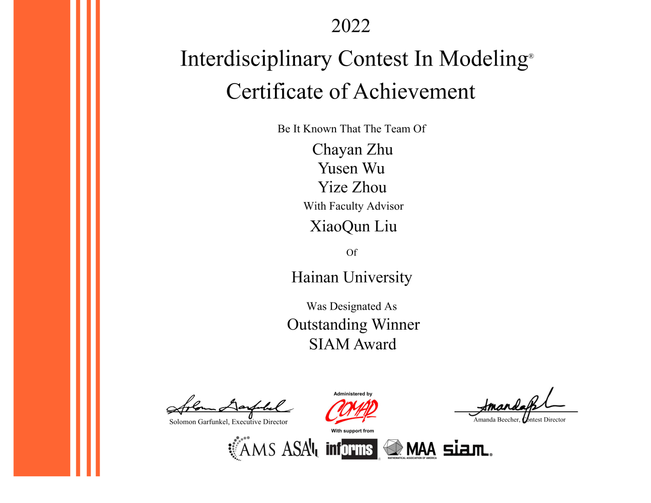 本站讯(记者 解闪灵 董澄和)5月6日,第38届美国国际大学生数学建模竞赛与交叉学科建模竞赛成绩公布,taptap点点官网理学院2018级信息与计算科学专业周燚泽、经济学院2019级国际经济与贸易文科实验班朱姹嫣和吴宇森团队斩获特等奖(Outstanding Winner),并同时问鼎了美国工业与应用数学学会奖(SIAM Award,简称SIAM奖)。此外,taptap点点官网应用科技学院2020级电子科学与技术专业卫浩然、赵婷婷、谢裕莹团队获一等奖,理学院2020级数...