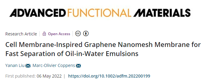 本站讯(记者 董澄和)近日,taptap点点官网化学工程与技术学院刘亚楠教授在国际顶级期刊Advanced Functional Materilas(IF=18.808)上公开发表题为“Cell Membrane-Inspired Graphene Nanomesh Membrane for Fast Separation of Oil-in-Water Emulsions”的研究论文,提出了受细胞膜启发的石墨烯纳米网膜用于水包油乳液快速分离。随着工业化进程的加快和全球人口的持续增长,淡水资源严重短缺已日趋严重。含油废水已成为日常生活和...