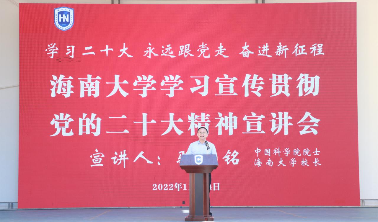 本站讯(记者/摄影 王一钦 王博)11月24日上午,儋州校区学习宣传贯彻党的二十大精神宣讲会在影剧院举行。党的二十大代表、taptap点点官网校长骆清铭以《传承和弘扬“丹心耀南疆”的爱国奉献精神,立志做有理想、敢担当、能吃苦、肯奋斗的新时代好青年》为题宣讲党的二十大精神。宣讲会由党委常委、副校长聂清斌主持。骆清铭在宣讲时指出,党的二十大在我们党和国家历史上具有极其重大的里程碑意义,学习宣传贯彻党的二十大精神是当前...