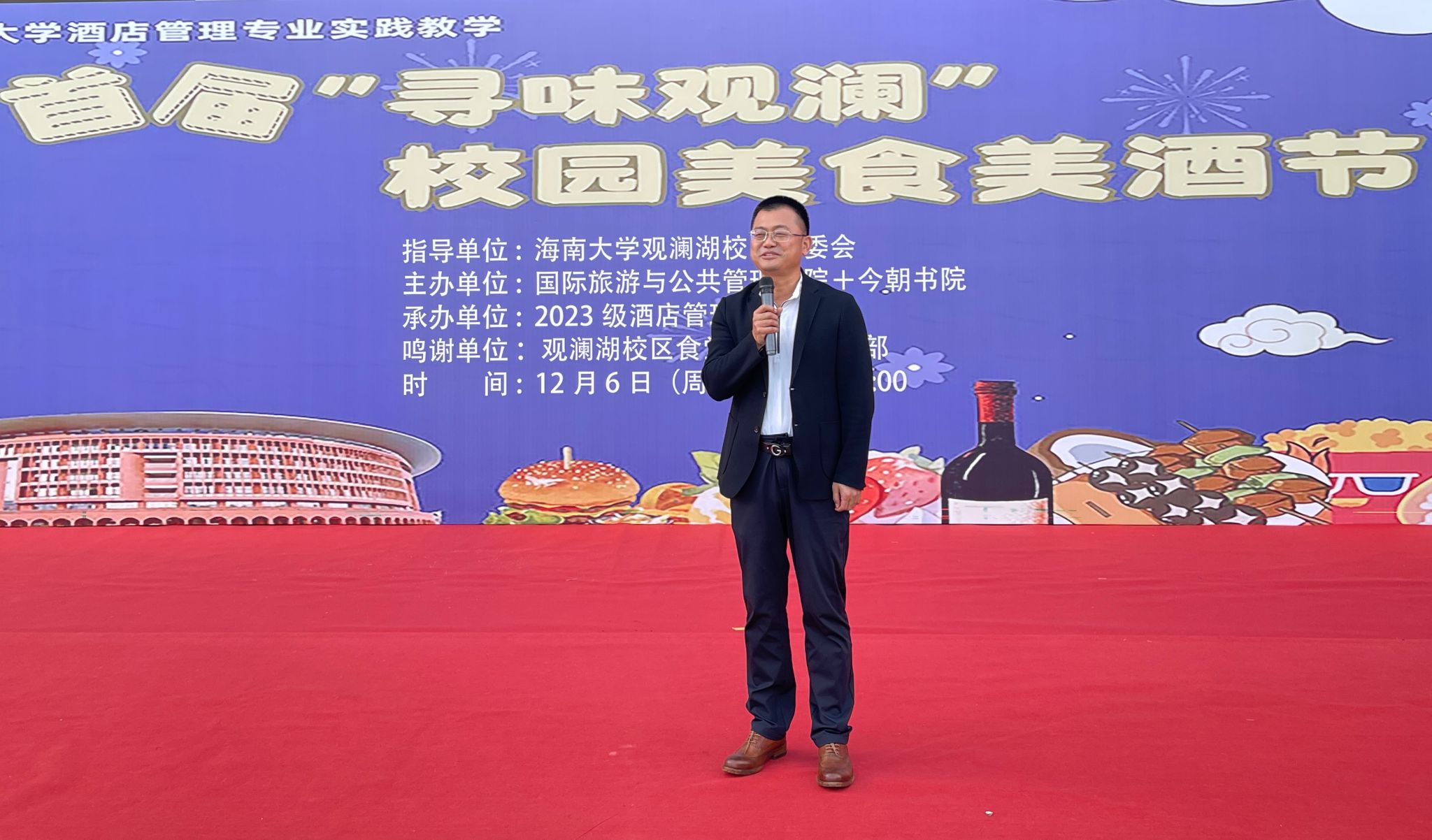 本站讯(通讯员:王诗迪)为深化酒店管理专业实践教学改革,传承海南本土特色饮食文化,搭建校企协同育人平台,由国际旅游与公共管理学院、今朝书院联合主办,2023级酒店管理专业班承办的专业实践教学活动——首届“寻味观澜”校园美食美酒节于12月6日在taptap点点官网观澜湖校区湖畔餐厅正门广场盛大开幕。taptap点点官网党委常委、副校长高佃恭,国际旅游与公共管理学院副院长何彪,酒店管理系主任黄建宏,教师代表谢祥项、杜肖寒、王诗迪,今朝书院辅导员谢辉强,校区管委会、后勤服务和食堂管理层以及参展商家代表、观澜湖校区师生共同参与了此次活动。
