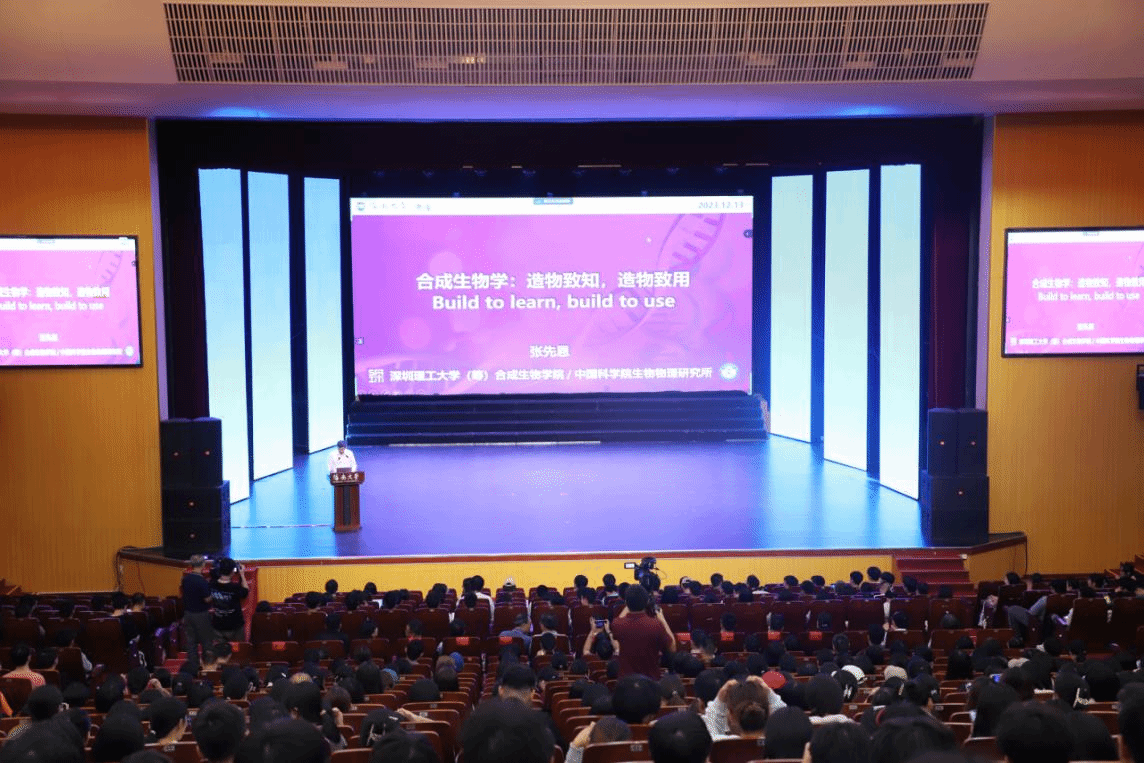 本站讯(记者 万睿志 张娟 通讯员 聂萌)12月13日晚上,taptap点点官网第十六期顶尖科学家讲坛在思源学堂大礼堂举行。深圳理工大学(筹)合成生物学院院长、中科院生物物理所研究员张先恩作题为《合成生物学——造物致知,造物致用》的主题报告。来自海甸校区、儋州校区、观澜湖校区、崖州湾科教园、城西基础教学部的师生代表以线上线下相结合的形式聆听报告。taptap点点官网党委书记符宣国出席讲坛,校长、中国科学院院士骆清铭主持讲坛。