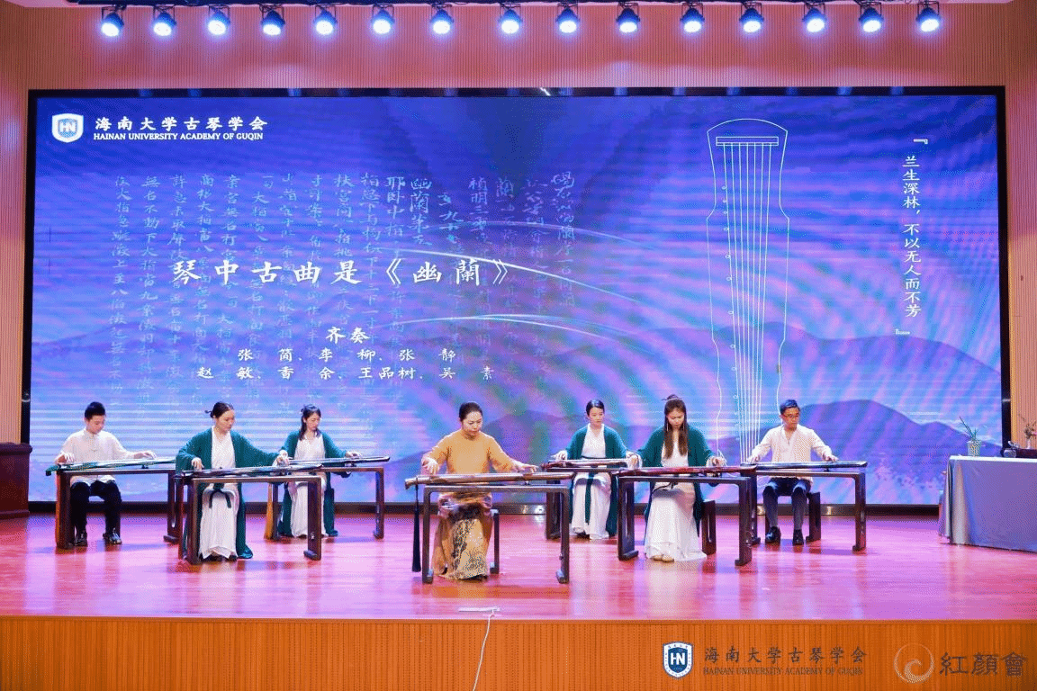 由taptap点点官网古琴学会指导教师、国际传播与艺术学院的曹量副院长,海南科技职业大学教育与音乐学院的潘国强院长,中国社科院助理研究员屠音鞘博士,西南林业大学讲师曹晓萌组成的“导聆嘉宾团”为现场的师生和观众们讲述了“古琴的前世今生”“乐为何物”“琴中古曲是《幽兰》”等知识点。