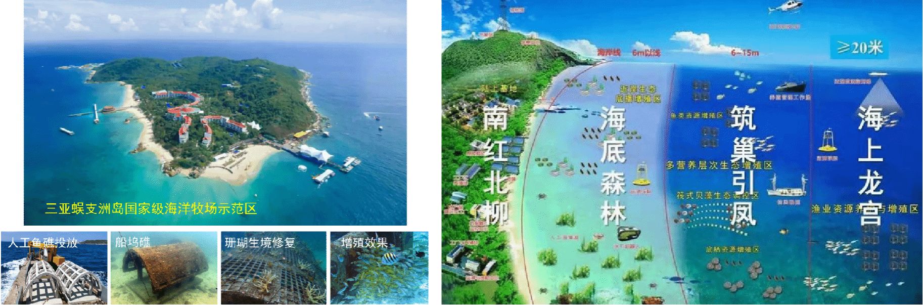 营造适合海洋生物生长与繁殖的生境,建立可以人工控制的海洋牧场,确保作为渔业生产基础的水产资源的稳定和持续增长,发展蓝色碳汇渔业。