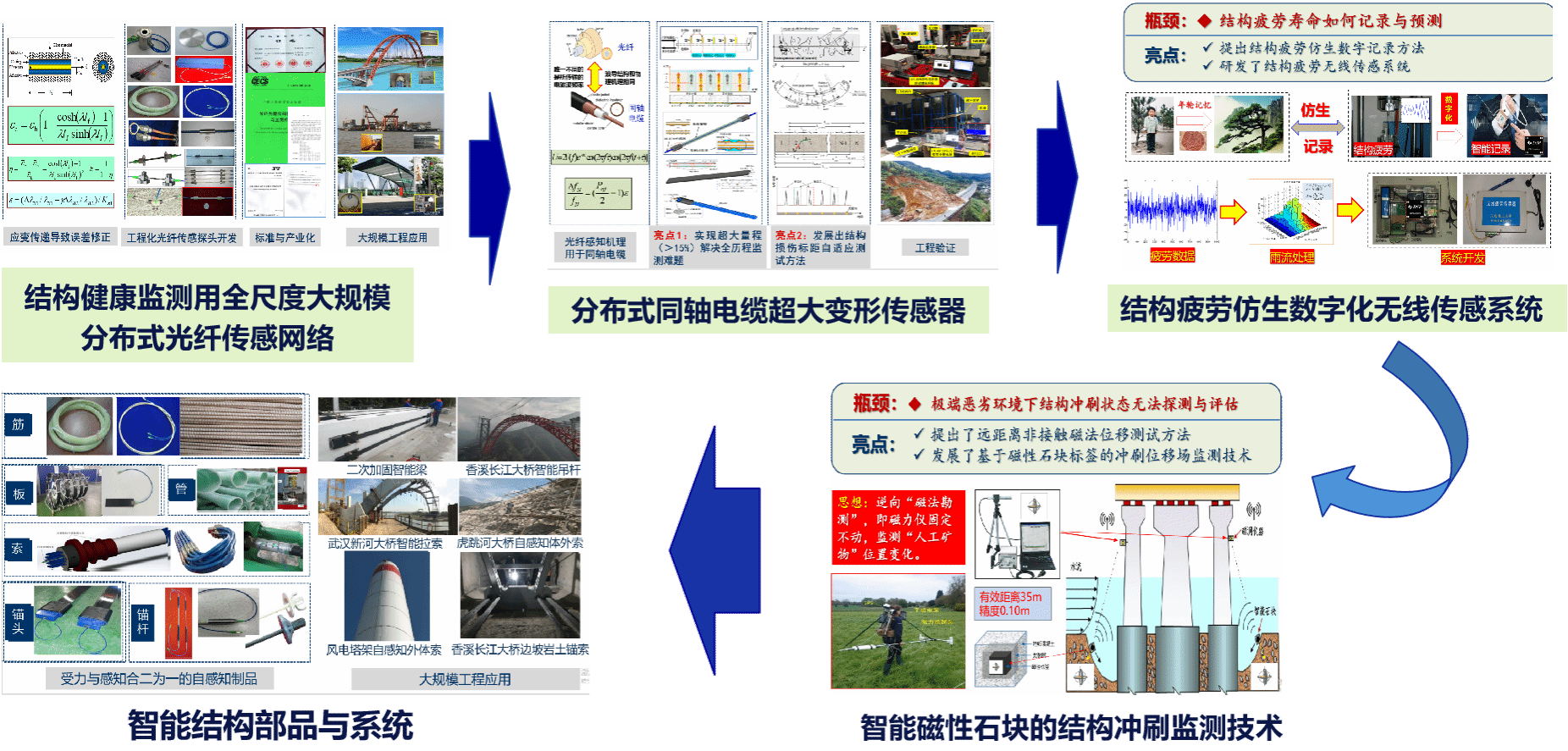 以提高大跨桥梁、大跨空间结构、超高层建筑与高耸结构、海洋与海岛设施等的抗风能力,保障重大工程安全为目标,经过产学研一体化联合攻关,提出了结构风振抑制的吹/吸控制技术、旋涡发生器控制技术、抗风风电以及抗风栏杆控制技术,并开发了一系列的相关设备与装置。