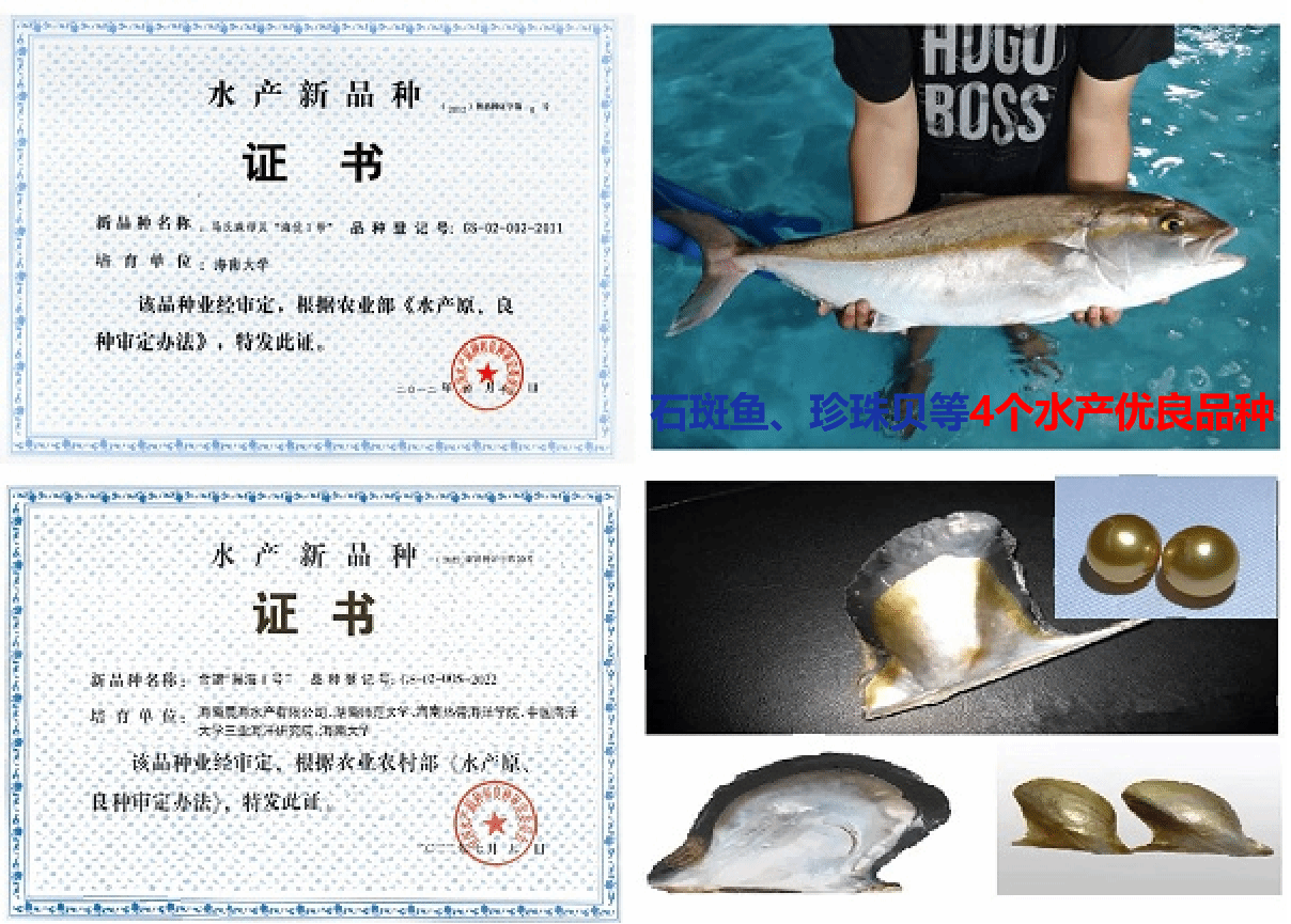 ▶ 培育石斑鱼、珍珠贝等4个水产优良品种,占据南海区域海水养殖产业70%以上份额;