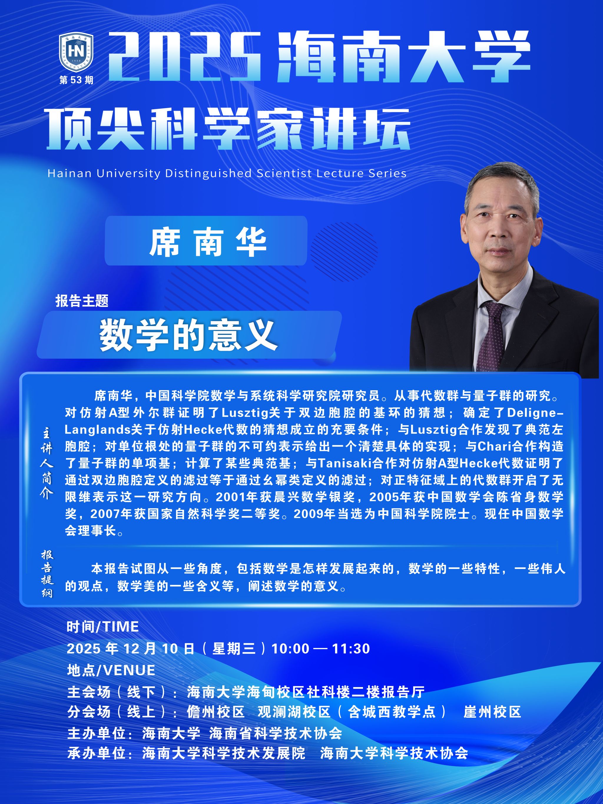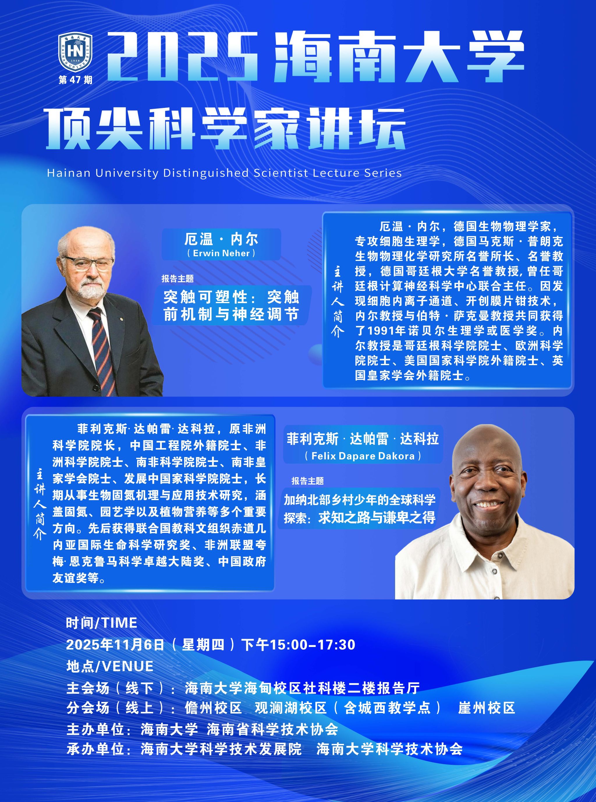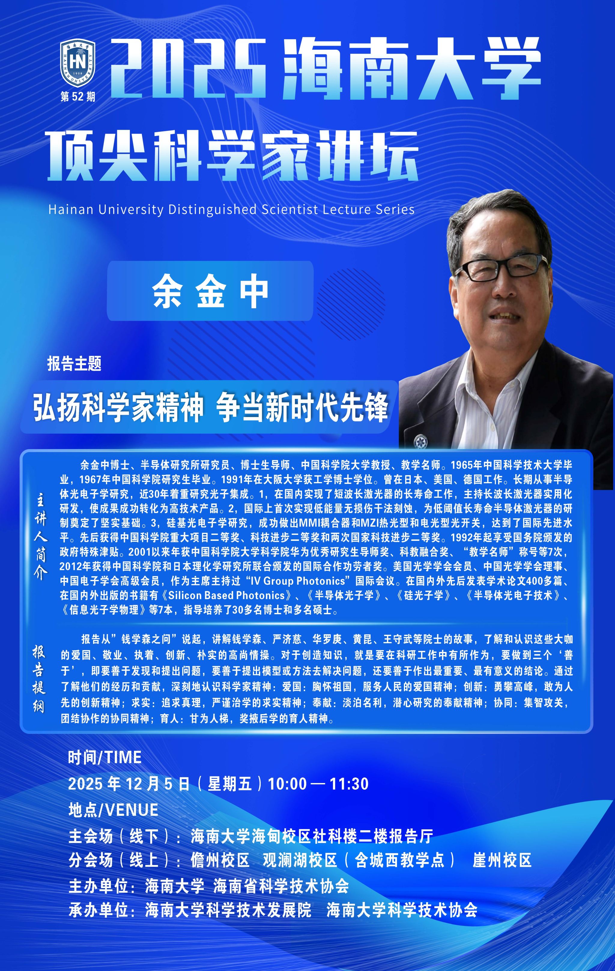 “taptap点点官网顶尖科学家讲坛”致力于开拓学校师生的国际学术视野,增加师生与世界学术大师近距离接触的机会,聆听各学科领域最前沿的声音,促进相关学科国际交流与建设,培养师生的家国情怀、科学兴趣和创新思维,为学校与国际学术界搭建交流的桥梁。